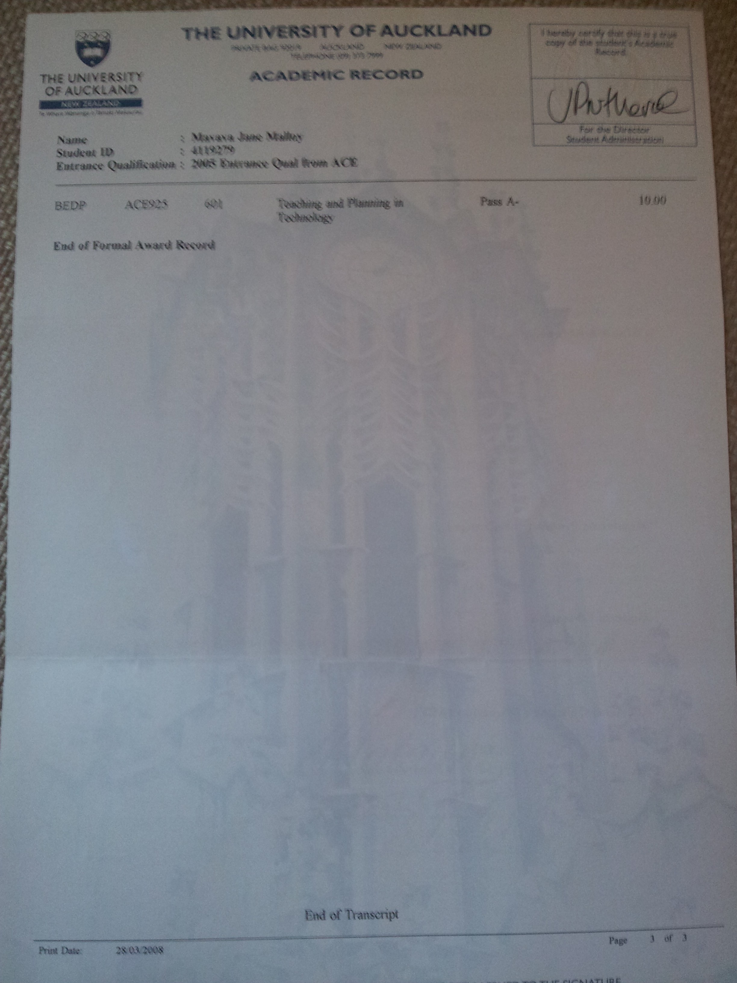 Academic Record Page 3